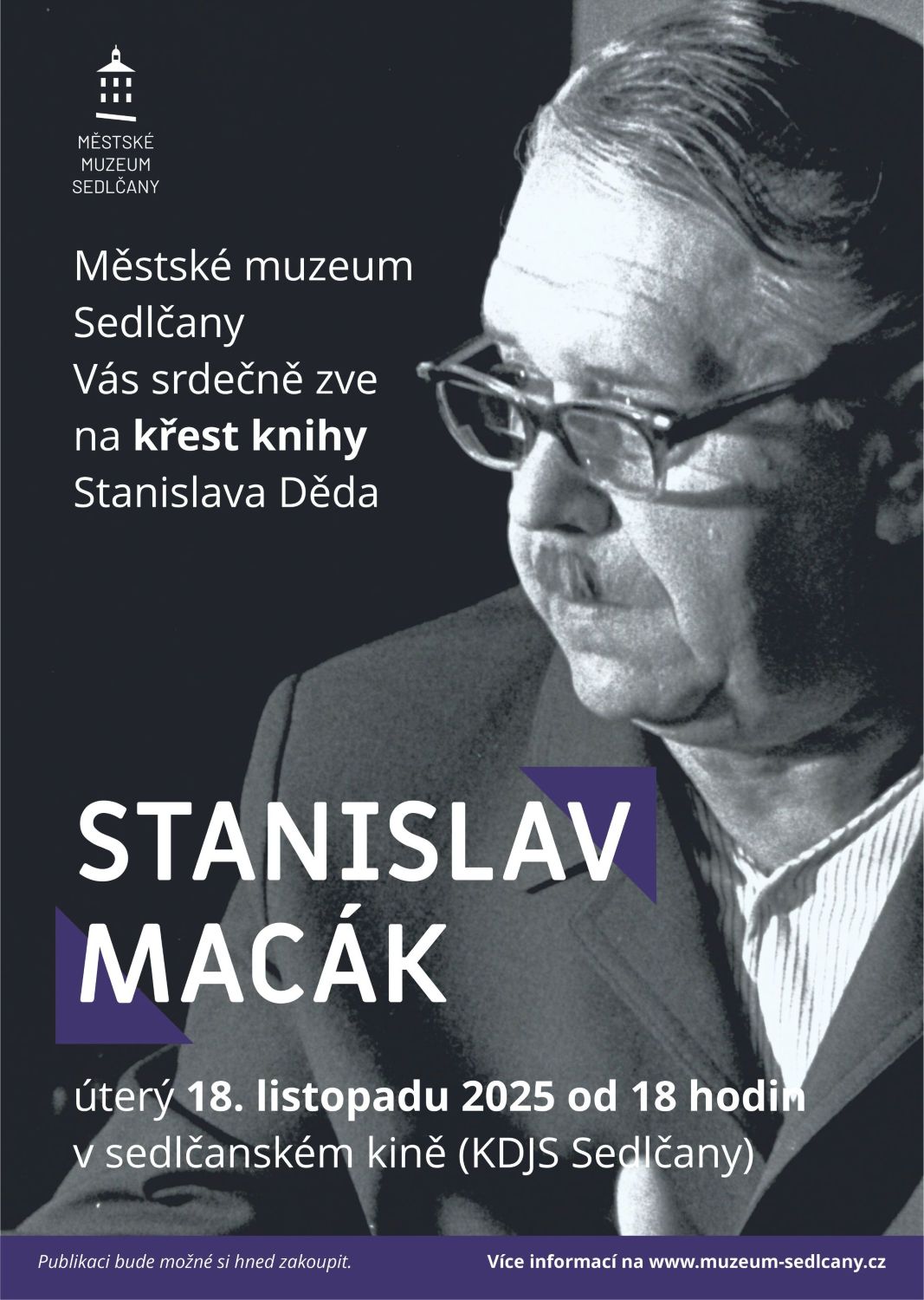Sedlčanské muzeum vydává novou publikaci, jejímž autorem je S. Děd a věnuje se osobnosti S. Macáka. Křest knihy proběhne v kinosále KDJS v úterý 18. listopadu od 18 hodin.