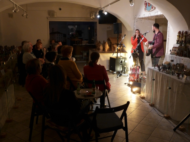 Akustické duo Zdeněk Zázvůrek a Daniela Benešová obohacené o akordeonistu Martina Zemana naladilo nepočetné, zato však velmi vstřícné publikum na vánoční vlnu. Jejich úkol jim ulehčilo umístění koncertu přímo v prostorách výstavy regionálních betlémů. V programu se objevily populární písně, autorská tvorba i klasické lidové koledy, byť ve svérázné úpravě.