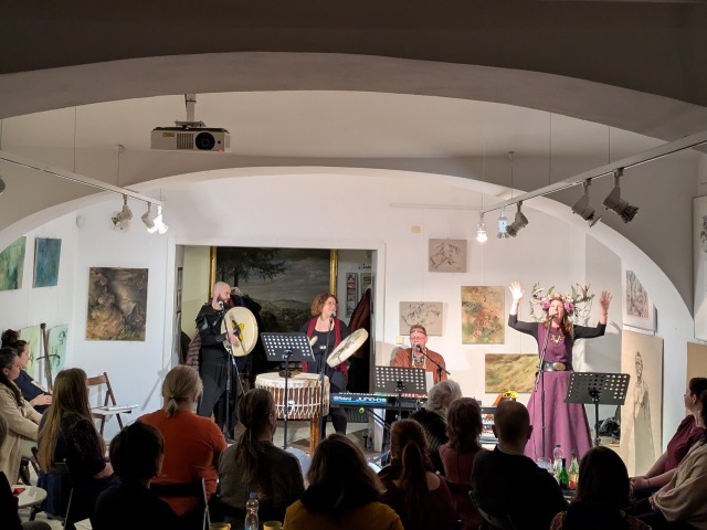 Hudební tvorba této čtyřčlenné kapely vychází z keltských a středověkých tradic, pročež se muzikanti při vystoupení také svými kostýmy do této tematiky stylizují. Večer plný epické i rozjímavé hudby přilákal plné hlediště diváků.